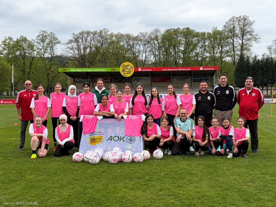 AOK Treff Fußball Girls startetGemeinsam den Spaß am Fußball entdecken Mit dem Projekt AOK-Treff Fußball Girls setzt der Südbadischer Fußballverband (SBFV) ein starkes Zeichen für den Mädchenfußball in der Region. Ziel der Initiative ist es, Mädchen einen unkomplizierten Einstieg in den Fußball zu ermöglichen – ganz ohne Leistungsdruck, dafür mit viel Bewegung, Teamgeist und Spaß am Spiel. Der AOK-Treff richtet sich vor allem an Mädchen, die den Fußball neu ausprobieren möchten oder bisher noch in keinem Verein aktiv sind. In lockerer Trainingsatmosphäre lernen die Teilnehmerinnen die Grundlagen des Fußballs kennen, probieren verschiedene Übungen aus und erleben, wie viel Freude gemeinsames Training machen kann. Geleitet werden die Einheiten von qualifizierten Trainerinnen und Trainern des SBFV, die den Mädchen altersgerecht und spielerisch den Sport näherbringen. Ein besonderer Fokus des Projekts liegt darauf, Mädchen den Weg in den Vereinsfußball zu erleichtern. Vereine erhalten so die Möglichkeit, interessierte Spielerinnen kennenzulernen und langfristig für ihre Teams zu gewinnen. AOK-Treff Fußball Girls beim SV OberkirchAuch der SV Oberkirch beteiligt sich an der Aktion und lädt fußballbegeisterte Mädchen aus der Region herzlich ein. Unter der Leitung eines Coaches des SBFV finden vier Trainingseinheiten statt, bei denen die Teilnehmerinnen Fußball ausprobieren, neue Freundinnen kennenlernen und gemeinsam Spaß am Sport haben können. Termine (jeweils mittwochs, um 17:30 Uhr bis 19:00 Uhr): 15. April 22. April 29. April 06. Mai