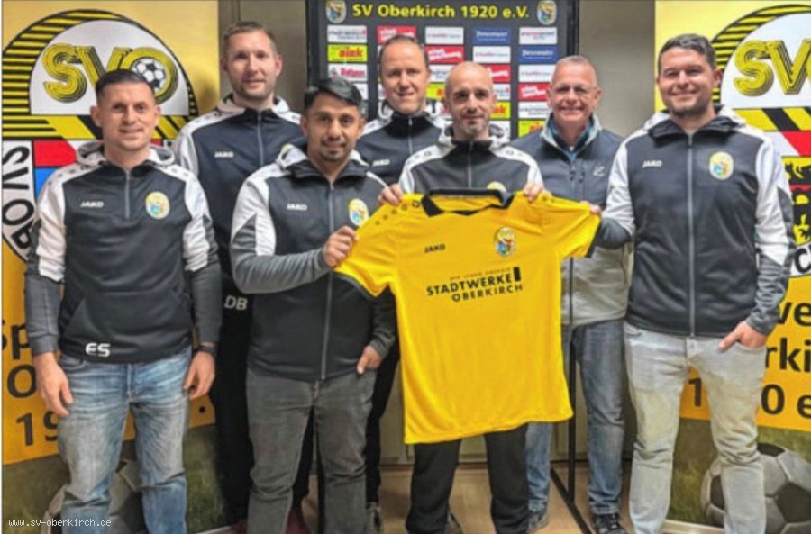 Trainerteam verlängert bis 2027Simon Lehmann bleibt Trainer des SV Oberkirch Der SV Oberkirch stellt frühzeitig die Weichen für die kommende Saison 2026/27. Wie der Fußball-Landesligist mitteilte, wurde mit dem kompletten Trainerteam der Seniorenmannschaften um Cheftrainer Simon Lehmann für eine weitere Spielzeit beim Tabellenfünften verlängert. v.l.n.r.: Enrico Stein (Spielausschuss), Stephan Dierle (Co.), Bekim Berisa (Co.), Stefan Hodapp (TW), Simon Lehmann (Trainer I.), Roland Schnurr (Vorstand Sport), Nicolas Panter (Trainer II.) |